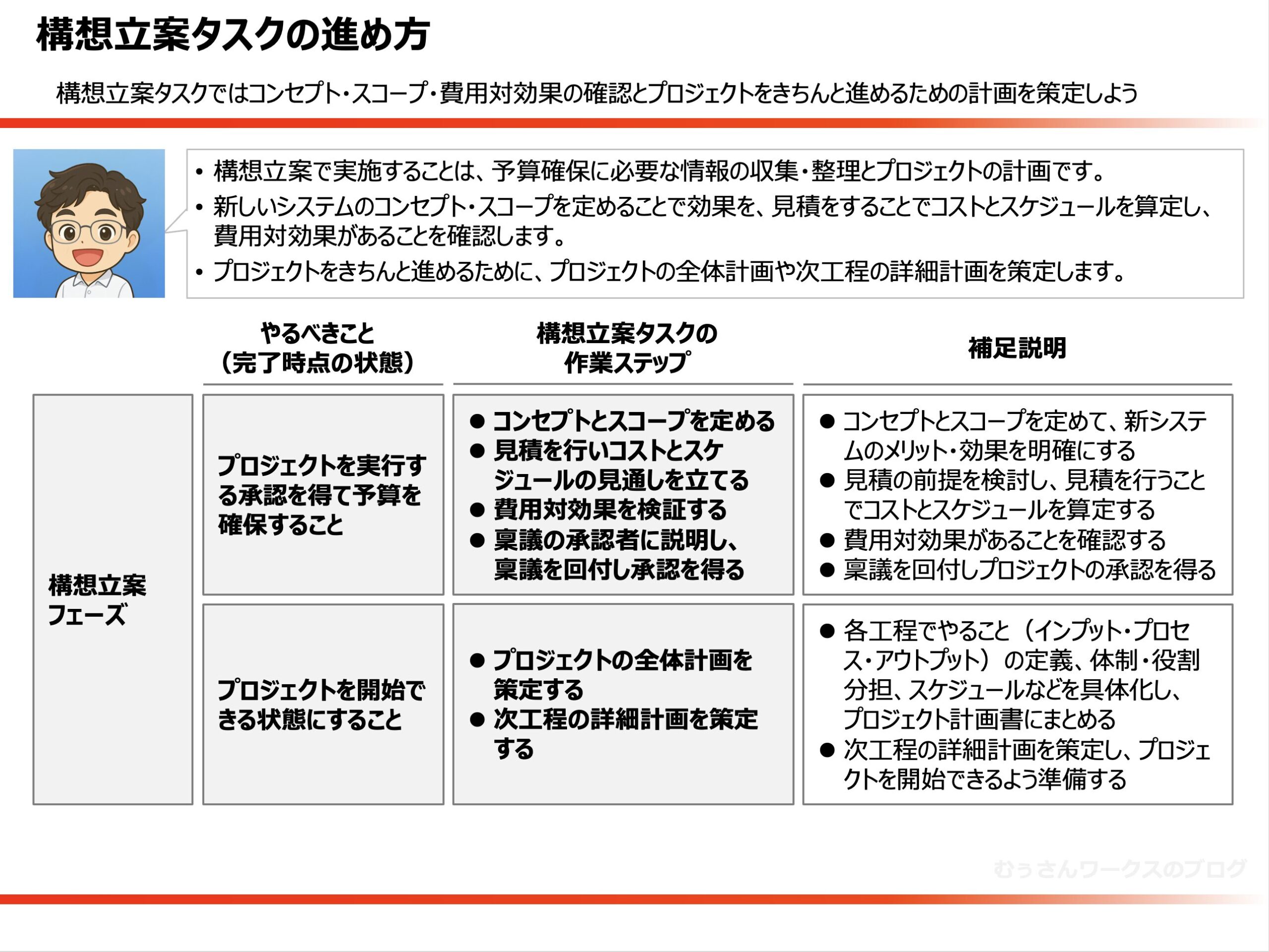 構想立案フェーズにおけるタスク(作業)は構想立案タスクのみになります。