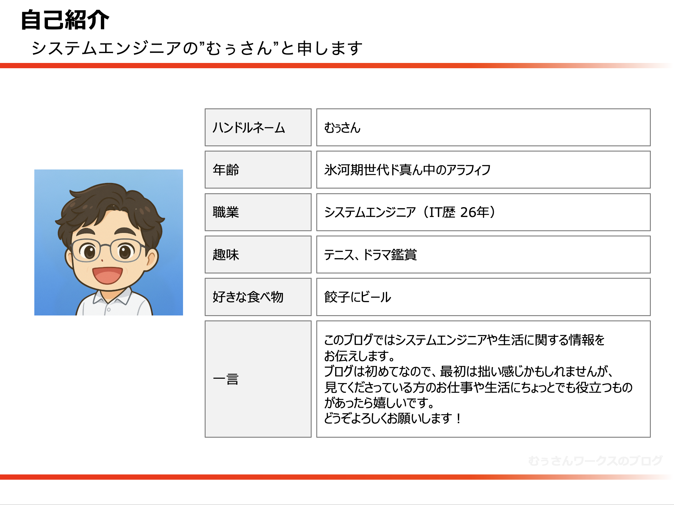 はじめまして、システムエンジニアの”むぅさん”と申します。